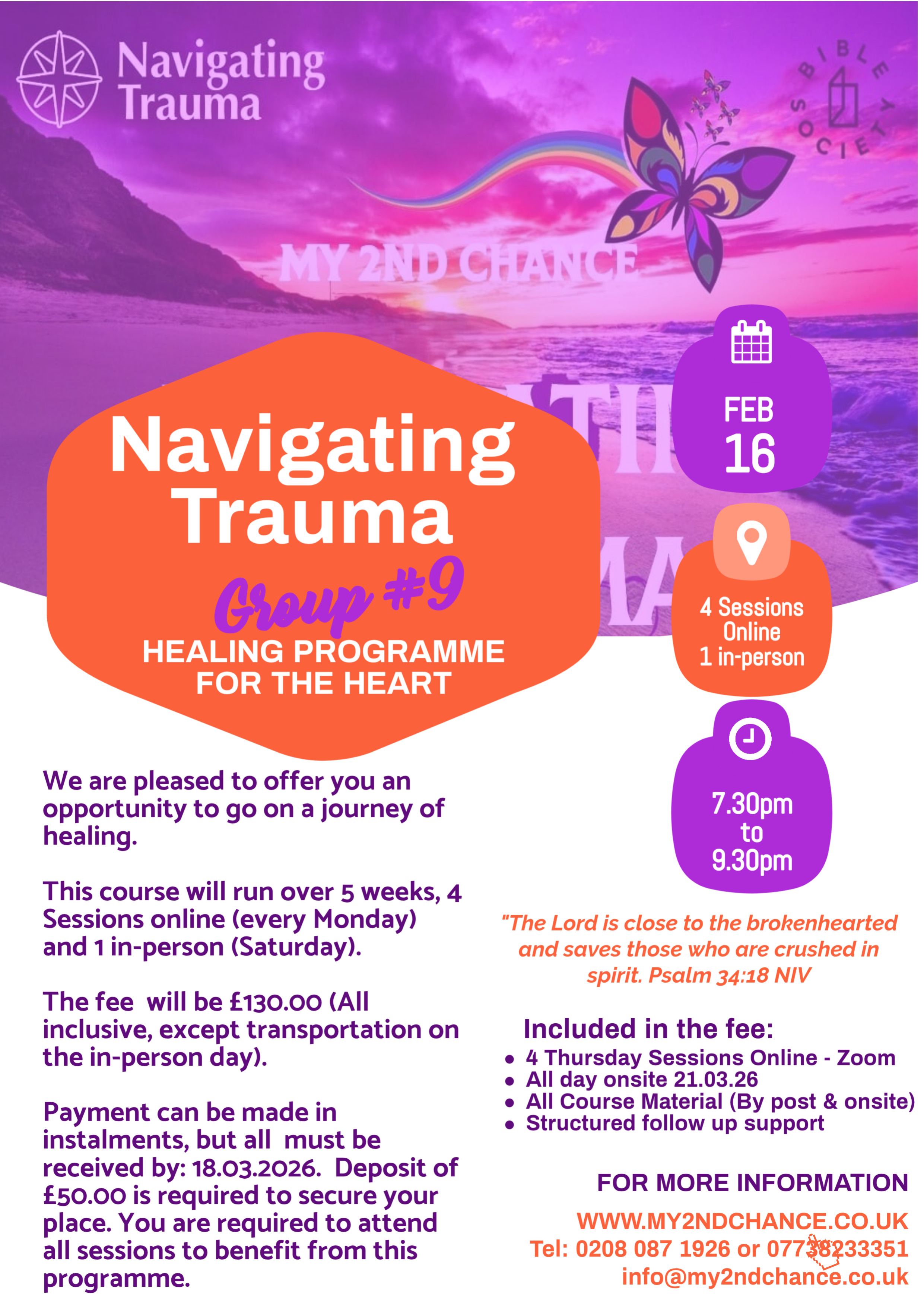 Let's go Group #9 first one for 2026 - We are pleased to offer you an opportunity to go on a journey of healing. This course will run over 5 weeks; 4 sessions online, concluding with a full day onsite. The fee will be £130 (all inclusive, except transportation). We have 5 subsidised places for participants joining from Ghana. Payment can be made in instalments, but all must be received by 18th March, Deposit of £50 is required to book your place initially. You are required to attend all sessions and especially the starting session. (The funds are non-refundable)